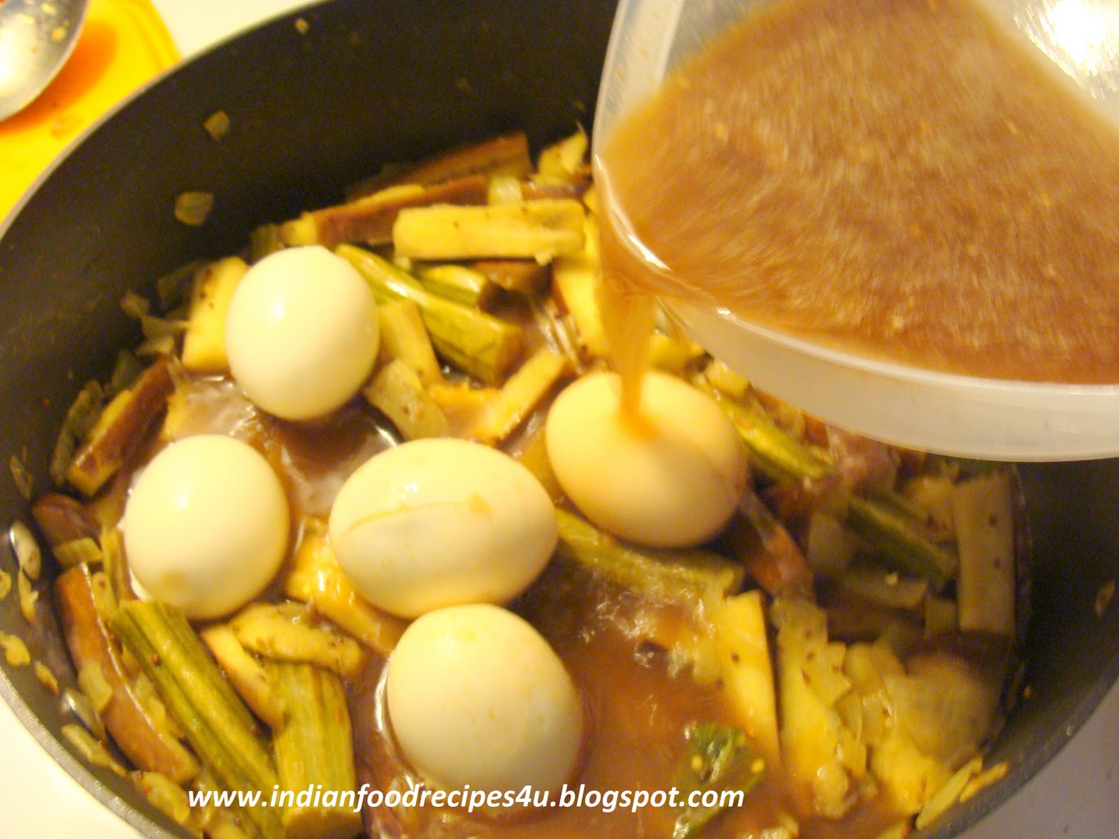 - Eggs, Drumsticks, Eggplant/Brinjal among these 3 ingredients you can omit any 2 of them and follow the same procedure to prepare the tangy sauce with one ingredient. It will taste yummy.