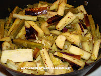 - Cut egg plant pieces tend to change their color to brown/black in a short time, to avoid this put the cut egg plants pieces into salt water.