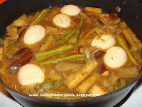 - Add the hard boiled eggs and tamarind water (tamarind extract + 2 cups of water, prepared earlier) and bring it to boil for 10 minutes.