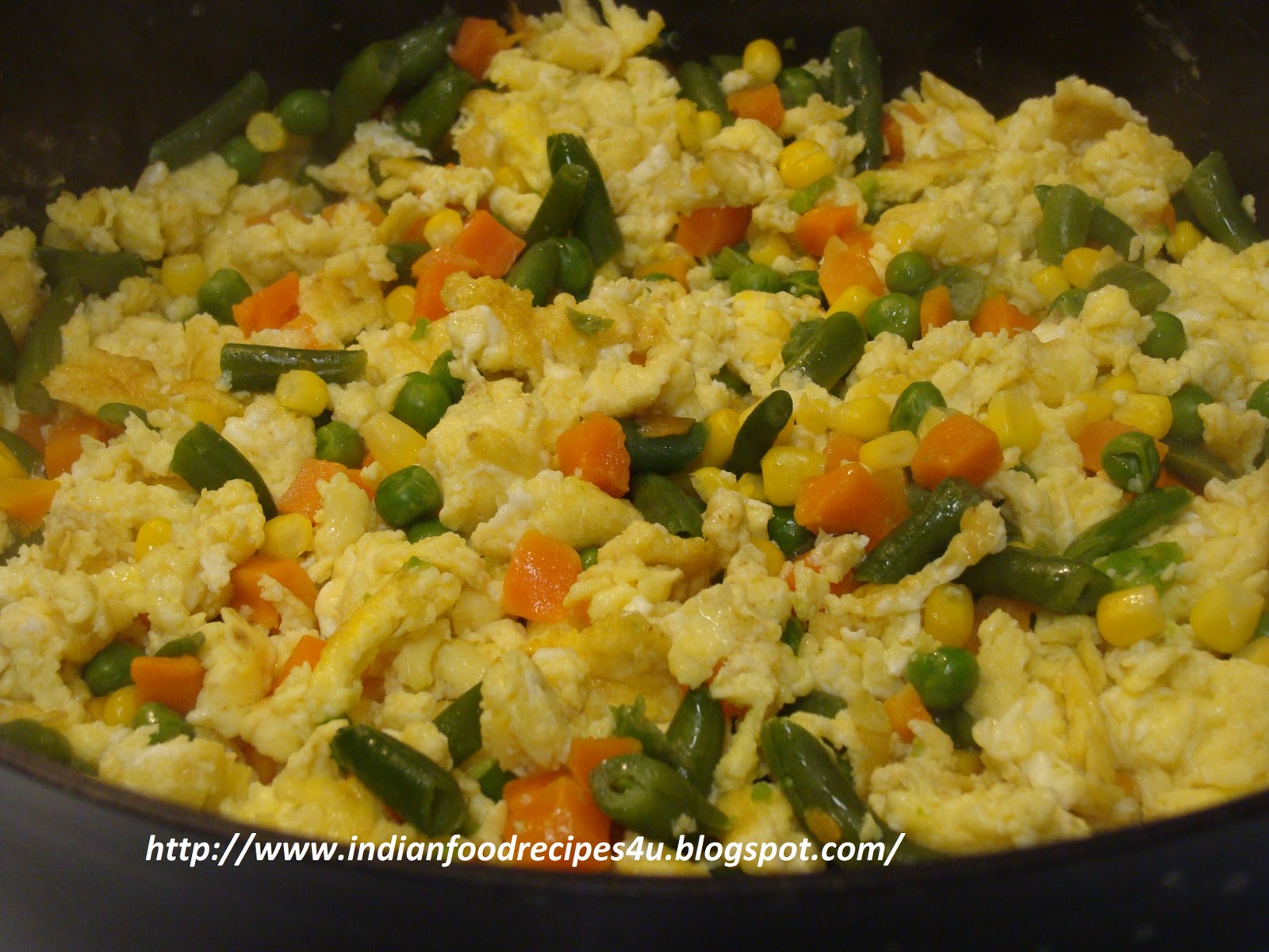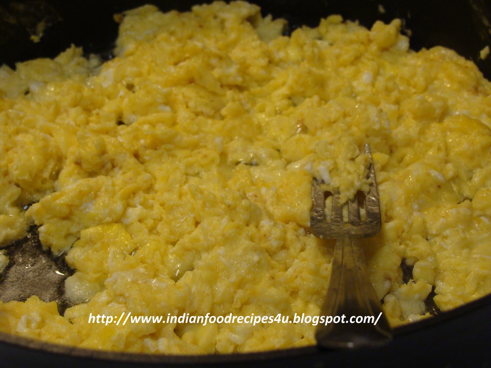 - Add the eggs to the heated oil in the pan and scramble it with the help of fork or spoon. Cook for 4 minutes.